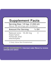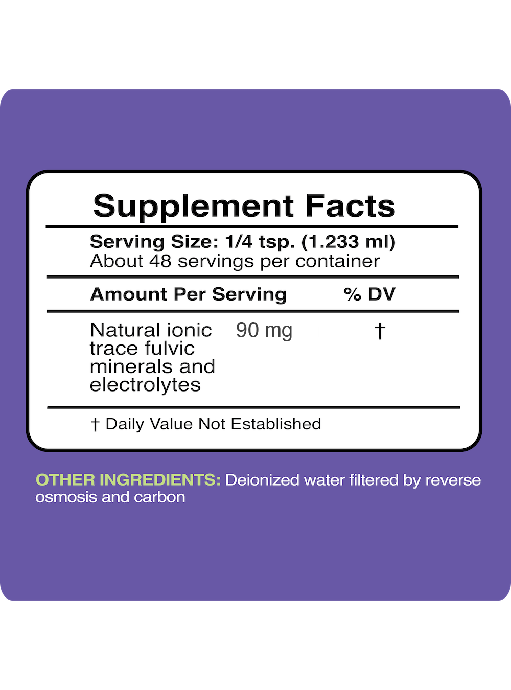 A POWERFUL ELECTROLYTE OF MORE THAN 70 IONIC TRACE MINERALS AND NATURAL PLANT COMPLEXES INCLUDING FULVIC ACID