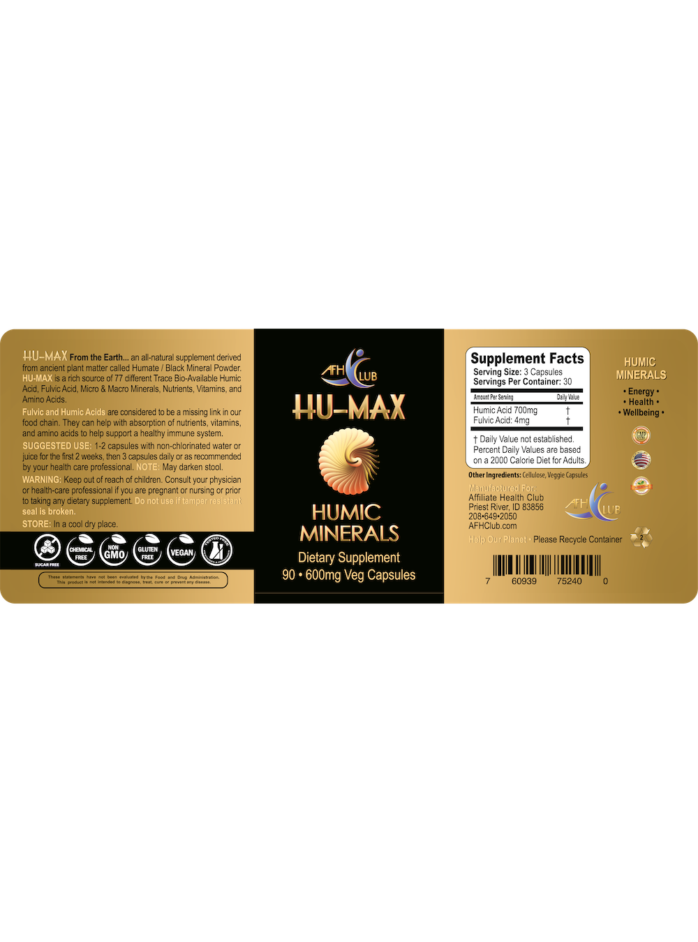 HU-MAX is a rich source of 77 different trace bio-available Humic Acid, Fulvic Acid, Micro & Macro Minerals, Nutrients, Vitamins, and Amino Acids.